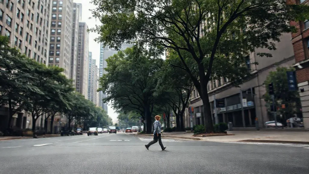 Calle urbana, ambiente realista y ligeramente difusa