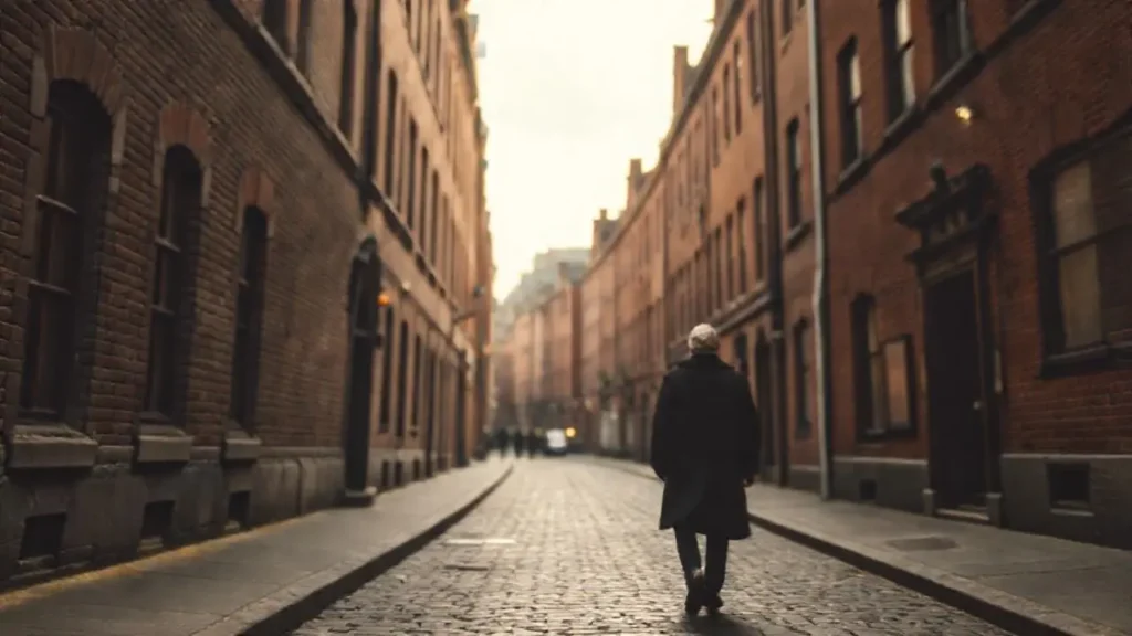 Calle tranquila, ambiente otoñal y realista
