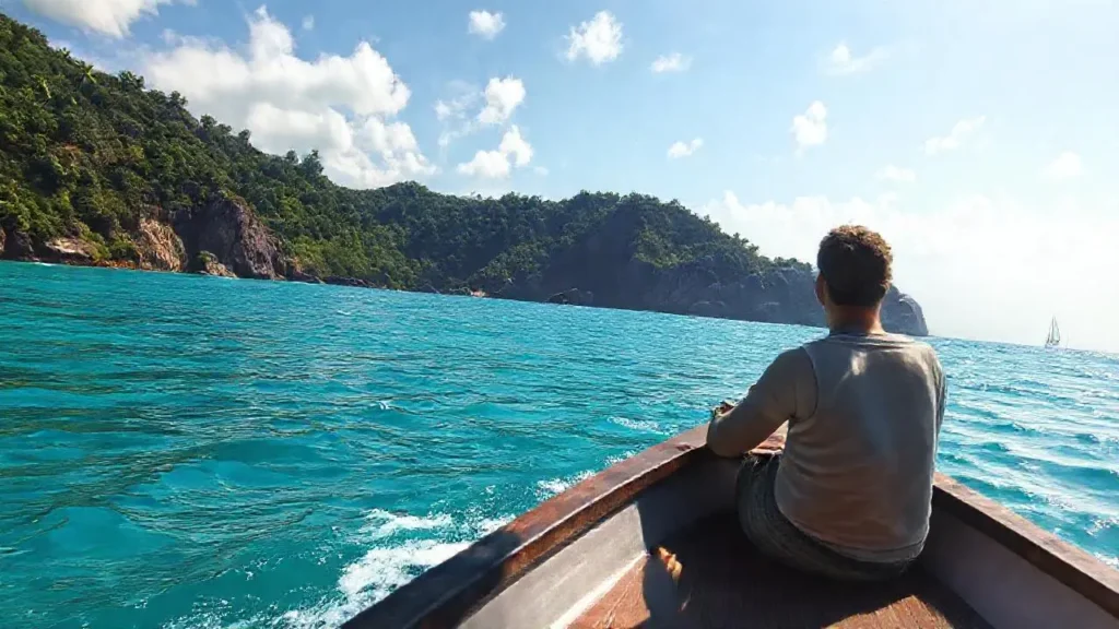 La aventura comienza en el puerto de Vila do Abraão, el principal punto de partida para las excursiones en barco en Ilha Grande. Desde aquí, un hidroala o una lancha rápida sale con dirección a la primera parada, una pequeña joya natural llamada playa de Caxadaço. Llegar a este lugar en barco permite apreciar desde el mar la majestuosidad de la isla, rodeada de montañas que parecen tocar el cielo y aguas que reflejan un tono azul profundo.