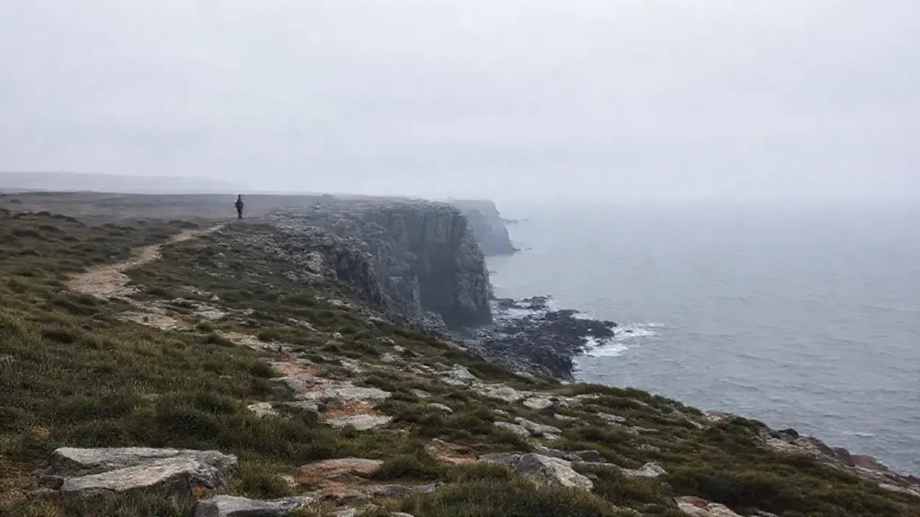 Paisaje costero vasto, melancólico y tranquilo
