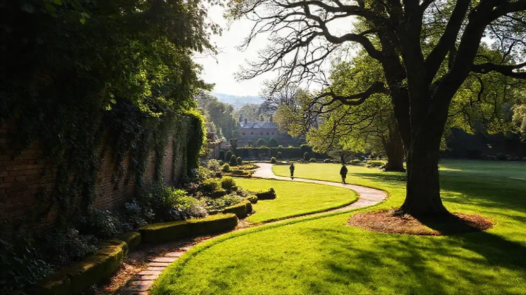 Otra estructura destacada es el cenador con glicinias, donde los visitantes pueden sentarse a descansar mientras disfrutan del aroma y la coloración de sus racimos en diferentes estaciones. A lo largo de los senderos, estatuas y fuentes decorativas añaden un toque artístico y romántico, reforzando la atmósfera de un parque diseñado para el disfrute y la reflexión. La combinación de elementos naturales y construidos contribuye a crear un entorno armónico, que combina historia, arte y naturaleza en un mismo espacio.
