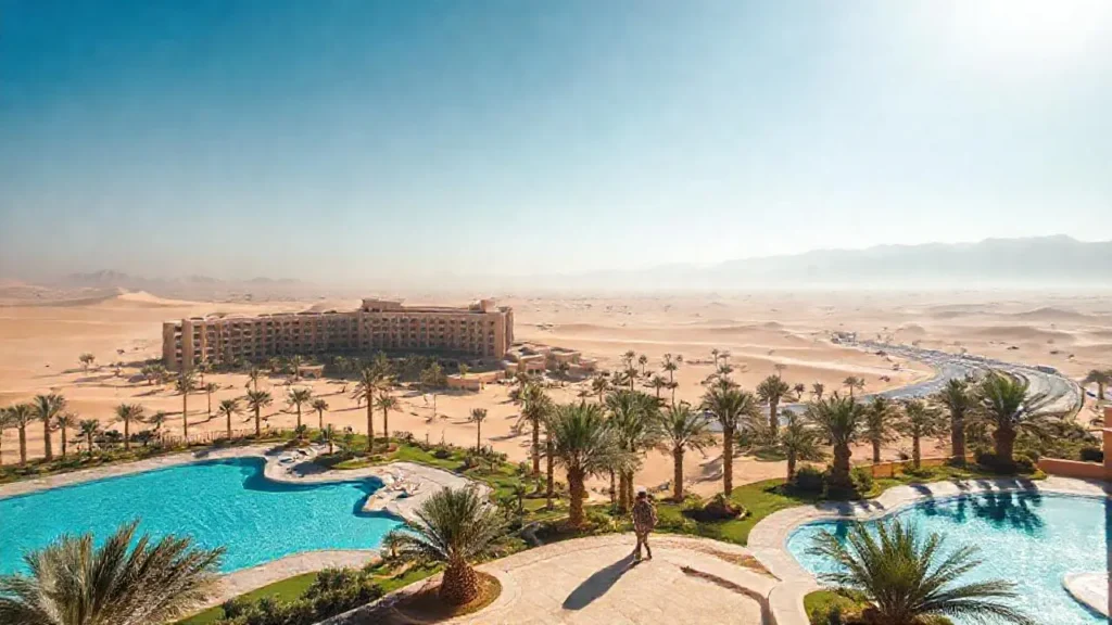 Las piscinas son uno de los elementos más populares en estos hoteles, ya que ofrecen la posibilidad de refrescarse después de un día lleno de actividades. Muchas de ellas están equipadas con áreas de descanso, bares junto a la piscina y servicios de toallas, permitiendo relajarse bajo el sol del desierto. Complementando esto, los spas y centros de bienestar son ideales para quienes buscan un momento de relajación total, con tratamientos que alivian el estrés y rejuvenecen cuerpo y mente.