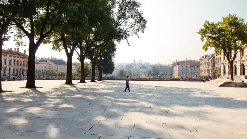 Plaza urbana espaciosa y luminosa