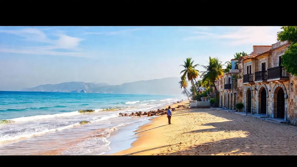 Playa soleada, mar tranquilo y cielo abierto