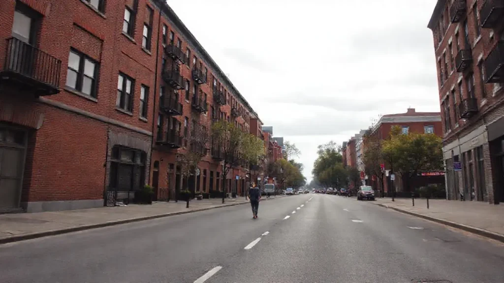 Calle urbana gris, ambiente tranquilo y difuso